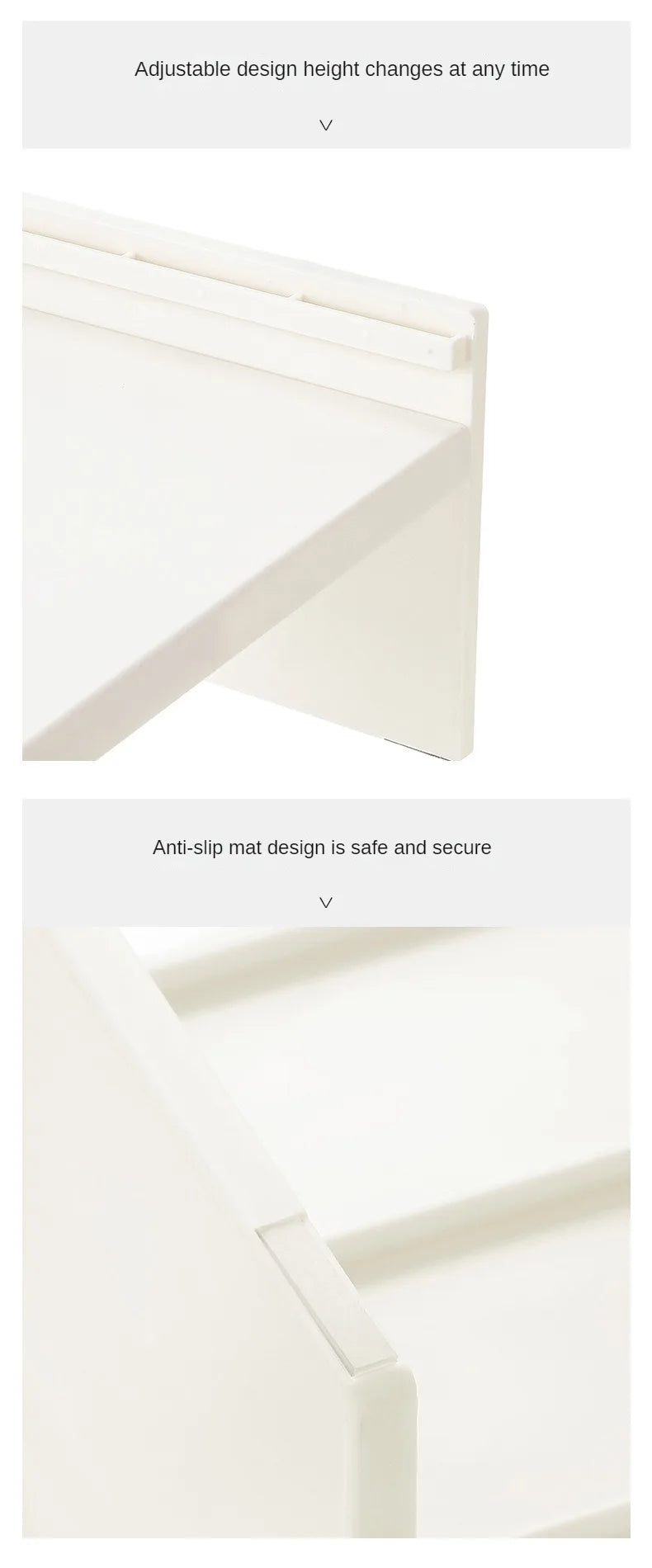 Made from durable ABS plastic, the organizer is built for long-term use and maintains its shape under daily handling. The clean, simple design blends seamlessly into any kitchen space. Installation requires no tools—simply extend the shelf to the desired length and place it where needed. It can also be used in bathrooms, closets, study rooms, and other areas where additional organization is needed.