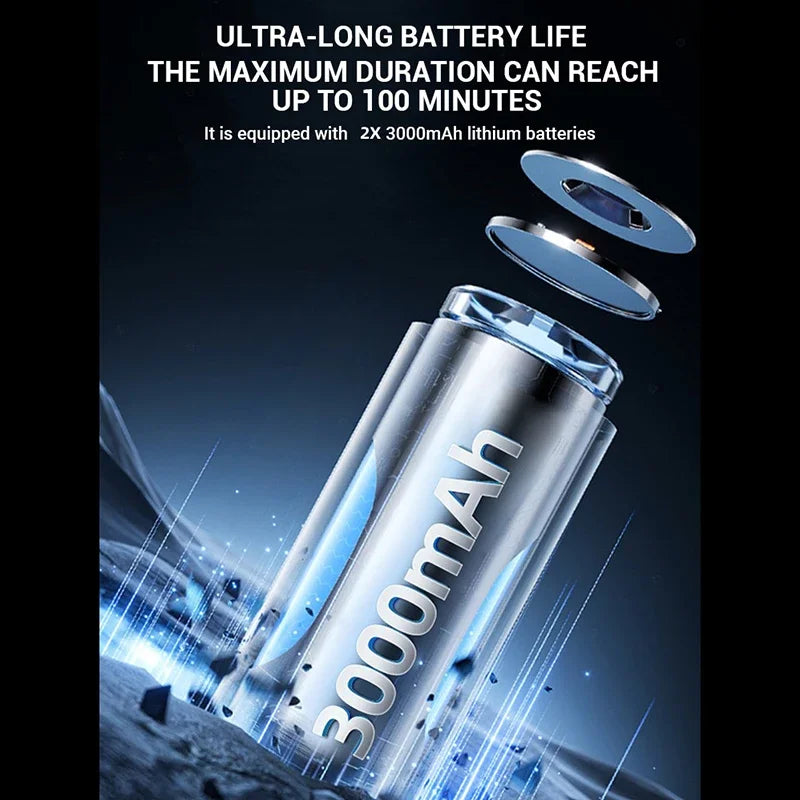 Rechargeable 6000mAh dual 21700 lithium battery for up to 2 hours of runtime