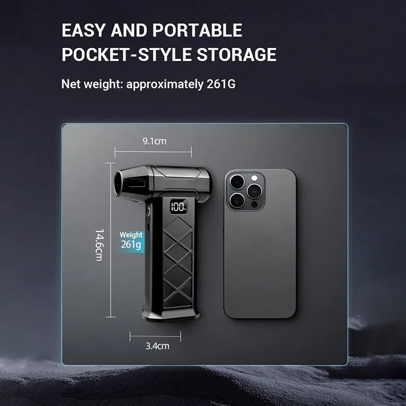 Experience next-level power and performance with the 800000RPM Turbo Air Blower — a compact yet incredibly powerful handheld tool designed for cleaning, drying, and outdoor use. Equipped with a high-speed brushless motor and 5 adjustable speeds, this air blower delivers exceptional airflow up to 55m/s, making it perfect for removing dust, debris, sand, and even snow.