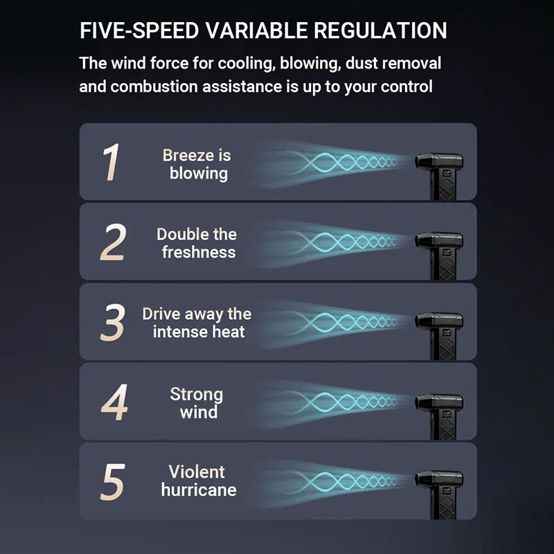 800000RPM Turbo Air Blower – 5-Speed Brushless Handheld Fan with Rechargeable Battery for Dust Cleaning, Outdoor & DIY Use